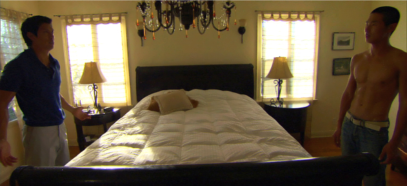 视频一开始,32岁的克莱德(Clyde,KEO WOOLFORD饰演,职业演员)与23岁的韦恩(Wayne,EDWARD GUNAWAN饰演,同时也是这部电影的制片人)滚床单结束,慵懒地躺在床上,回味刚刚过去的激*情时光。两个人东一句西一句,有的没的闲聊一些网上勾搭的技巧,以及对彼此的体验。他们有着相似的爱好,言语又投机,从各个角度看这两个人在一起都很合适。