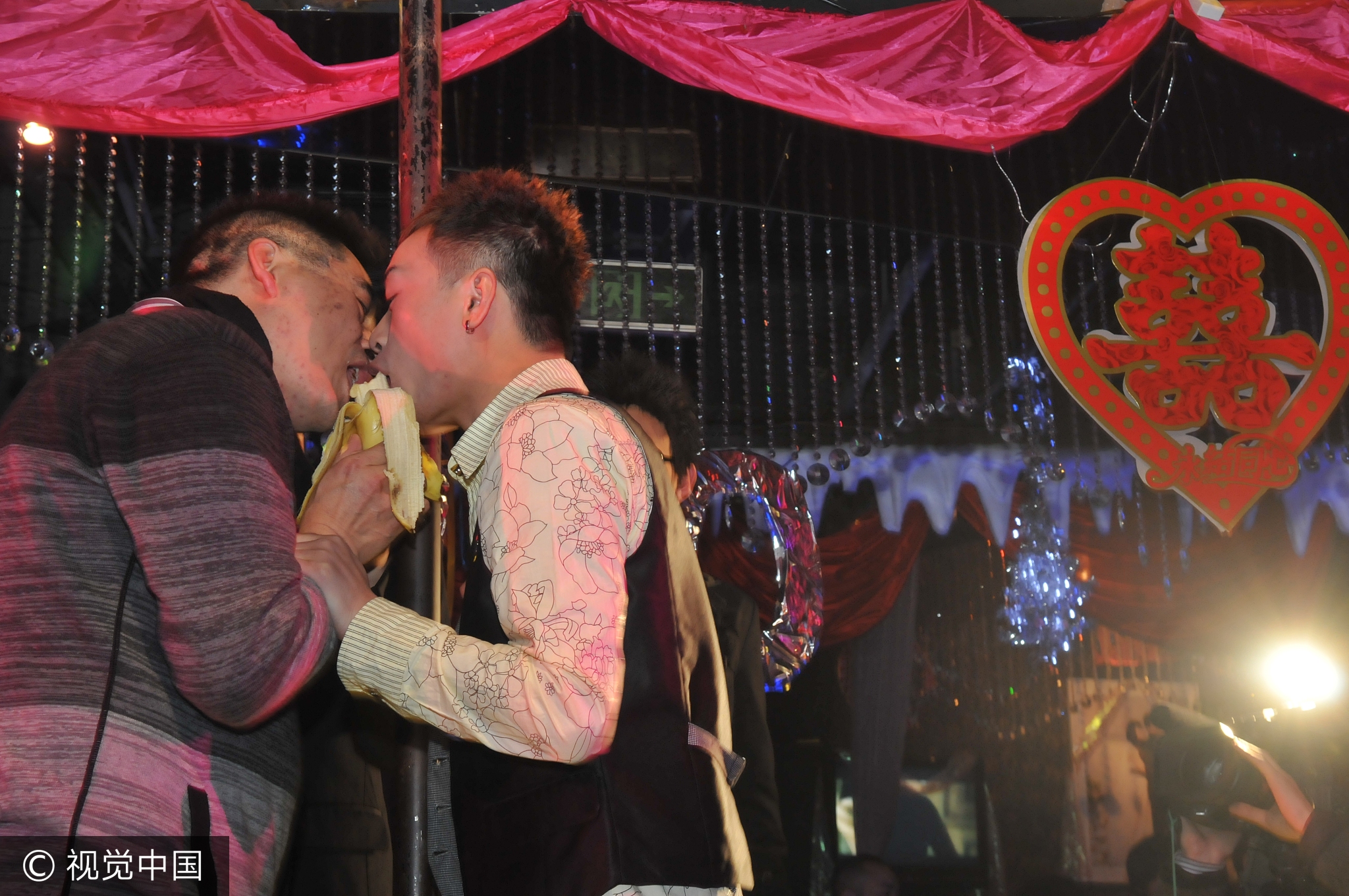 2010年1月3日,成都一家著名的男性 “同志"酒吧里,两名男性,曾哥和小潘,举行瞭一场"婚礼”。/视觉中国