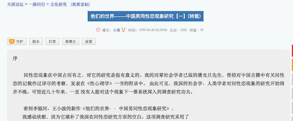 Featured image of post 天涯宣布关闭“一路同行”同性恋交流版