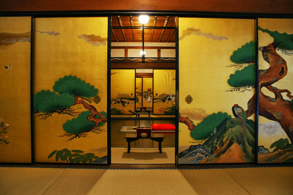 祝祷室内精美的拉门,全部是由江户时代著名画家**狩野永岳(1790-1867)**绘制的古迹