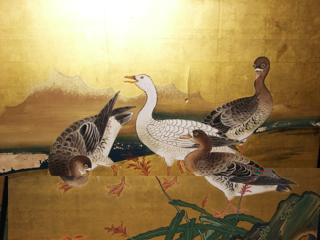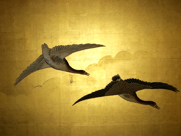 议事厅的中心,是皓月与大雁。这两幅图表现瞭日本初冬的风景。