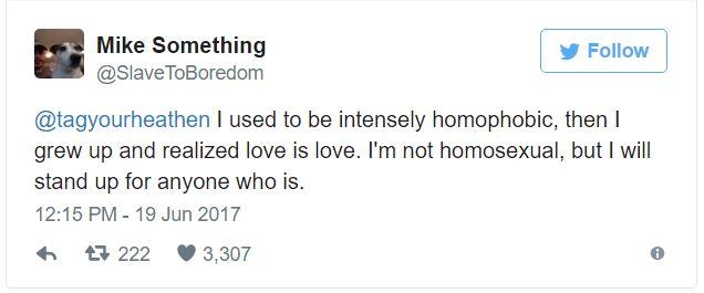 8 「我以前有严重的恐同症,但长大以后,我了解爱就是爱。所以虽然我不是同性恋,但我觉得会为瞭任何一个同性恋,站起来发声。」