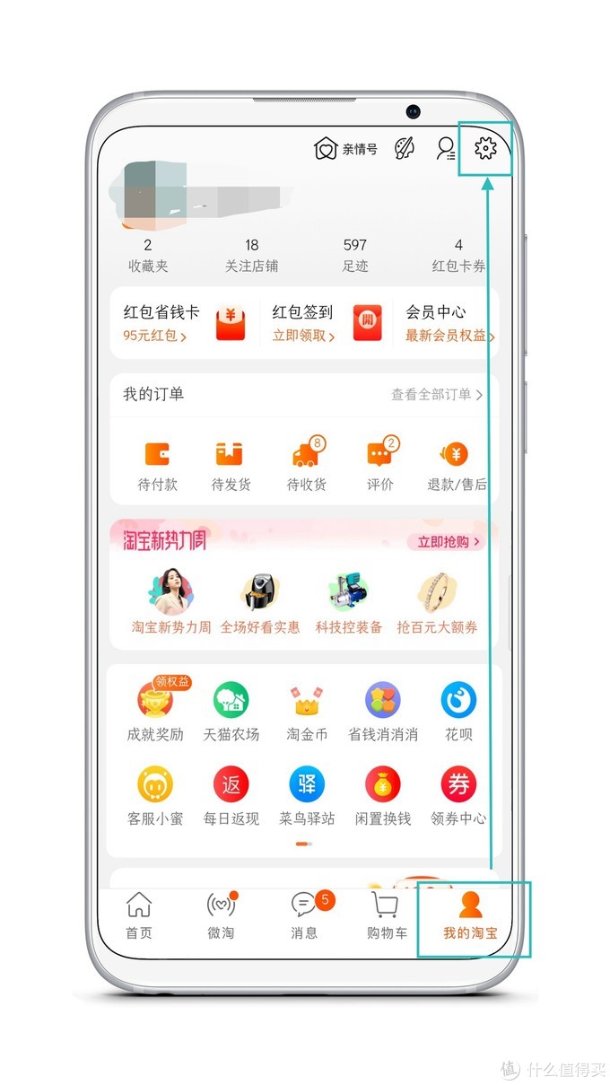 1. 打开淘宝,在 “我的淘宝” 中点击 “设置” 按钮