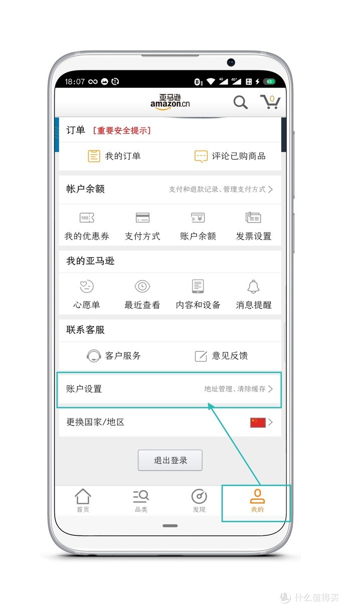 1. 打开亚马逊——>“我的”——>“账户设置”